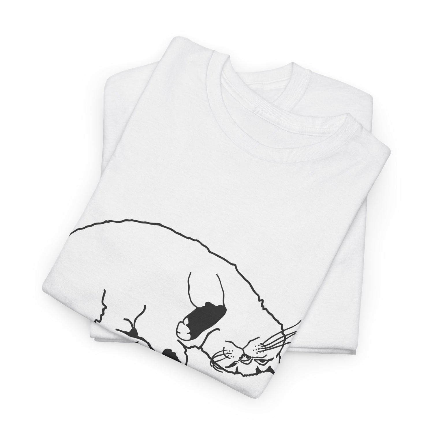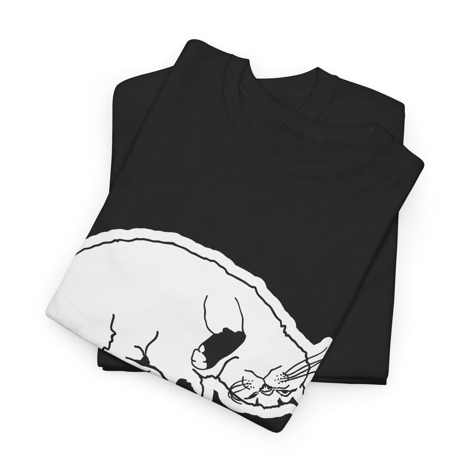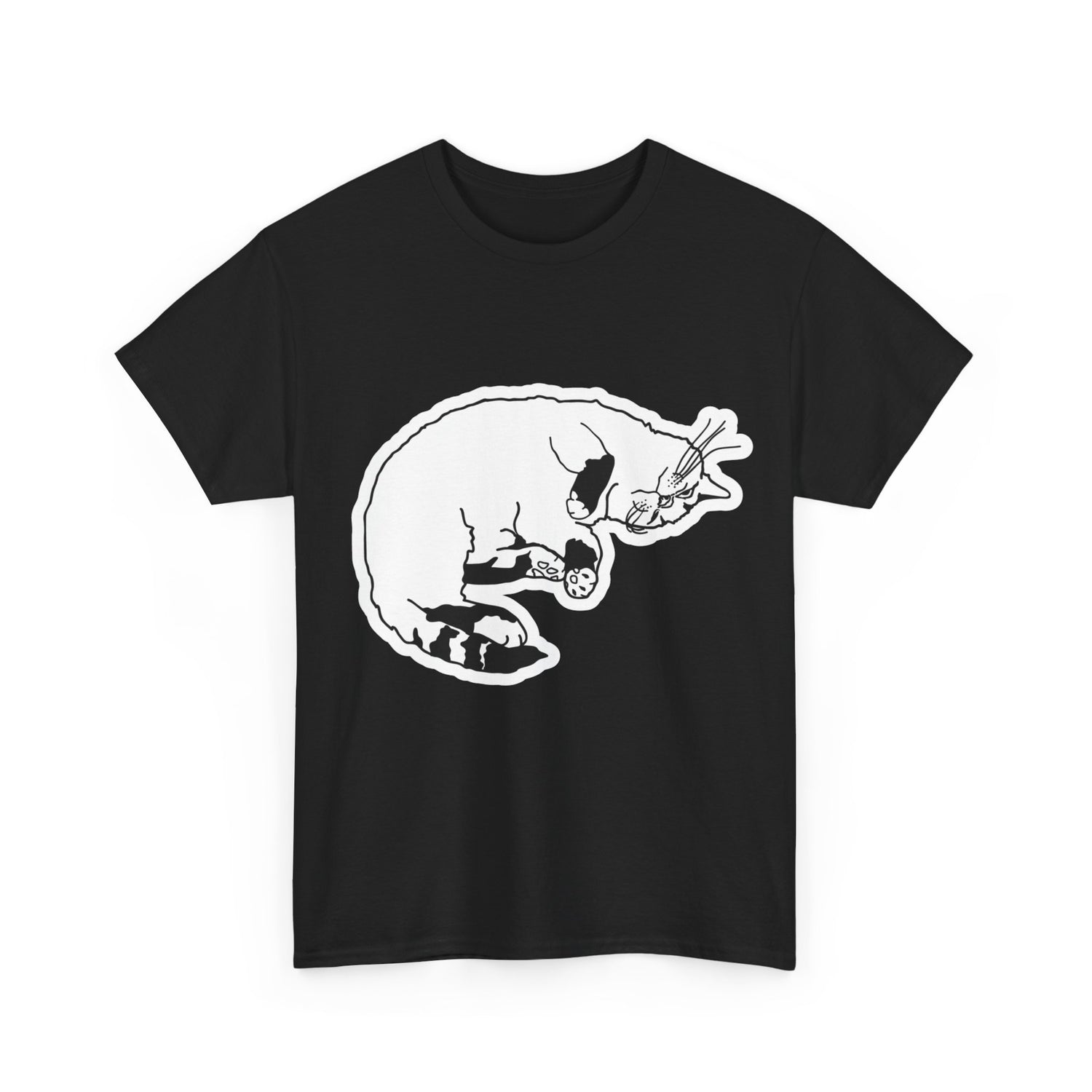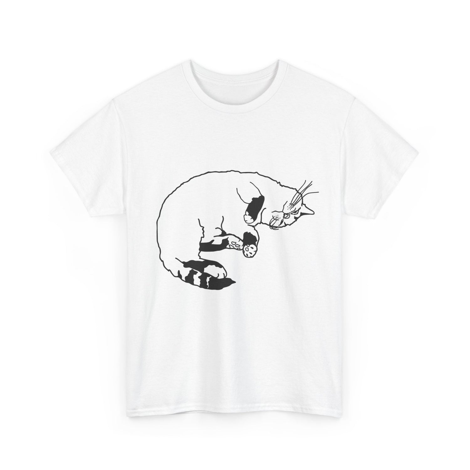 This t-shirt features Fhaye, who has rolled around comfortably on her back, showing off her fluffy belly. With her head upside down and a blissful expression on her face, she embodies the ultimate state of relaxation. It’s as if she’s saying, “Life is better when you’re just chilling!”
